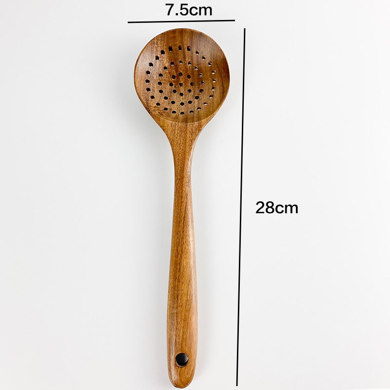 Colador De Cuchara De Sopa De Madera Maciza De Mango Largo De Teca